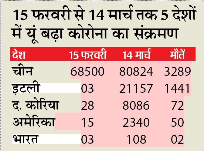 कोरोना से निपटने में भारत का ट्रैक रिकॉर्ड अमेरिका, चीन, इटली और दक्षिण कोरिया से बेहतर रहा है। 15 फरवरी को भारत में 3 मरीज थे, जबकि अमेरिका में 15 और इटली में 3 थे। एक महीने में भारत में 105 मरीज बढ़े और दो मौतें हुईं, जबकि इटली में इस दौरान 1,441 और अमेरिका में 50 मौतें हो चुकी हैं।