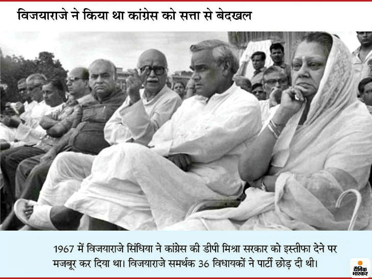 मध्य प्रदेश की राजनीति में सिंधिया परिवार 53 साल पुराने इतिहास को दोहरा रहा है। 1967 में विजयाराजे सिंधिया की वजह से कांग्रेस सत्ता से बेदखल हुई थी और अब उनके पोते ज्योतिरादित्य सिंधिया की वजह से कमलनाथ सरकार संकट में घिर गई है। 1967 में लोकसभा और विधानसभा चुनाव के ठीक पहले विजयाराजे ने कांग्रेस से इस्तीफा दे दिया था। उन्होंने विधानसभा और लोकसभा के चुनाव स्वतंत्र उम्मीदवार के तौर पर लड़ा और दोनों चुनाव जीतीं।