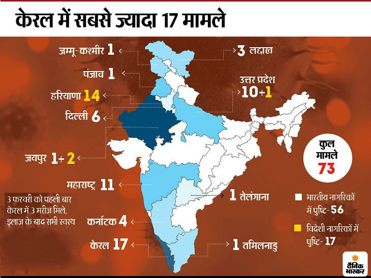 भारत ने कोरोनावायरस मामलों की संख्या 73 पहुंच गई है। बुधवार को जारी सरकार के आदेश के मुताबिक, 13 मार्च को शाम 5.30 बजे (12 जीएमटी) से अगले 35 दिन के लिए दुनिया के किसी भी देश के हर व्यक्ति के वीजा रद्द कर दिए गए हैं। सिर्फ डिप्लोमैटिक और एम्प्लॉयमेंट वीजा को छूट दी गई है। सरकार ने साफतौर पर कहा है कि अगर जरूरी न हो तो भारतीयों को विदेशों में जाने से बचना चाहिए। भारत में रह रहे सभी विदेशियों के वीजा वैध बने रहेंगे।