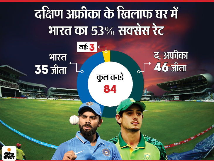द.अफ्रीका के साथ 3 वनडे की सीरीज का पहला मैच गुरुवार को धर्मशाला खेला जाएगा। द.अफ्रीका की टीम 4 साल बाद वनडे सीरीज के लिए भारत आई है। टीम इंडिया के पास साल की तीसरी और आखिरी वनडे सीरीज जीतने का मौका है। इससे पहले टीम इंडिया ने जनवरी में ऑस्ट्रेलिया को 2-1 से हराया था, जबकि फरवरी में न्यूजीलैंड के खिलाफ उसे 3-0 से हार मिली थी। इस साल भारत को मार्च के बाद कोई वनडे सीरीज नहीं खेलनी है। इसके बाद उसके सभी टूर्नामेंट टी-20 फॉर्मेट में होने हैं।