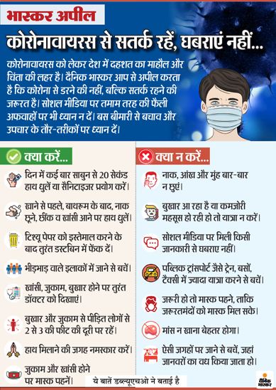- श्वांस रोग विशेषज्ञ डॉक्टर पीएन अग्रवाल ने बताया कि, भारत की हवाओं में कोरोनावायरस है ही नहीं, इसलिए लोगों को बेवजह घबराना नहीं चाहिए। यहां तो वे लोग शिकार हुए हैं, जो बाहर से आए हैं या बाहर के लोगों के संपर्क में आए हैं। डॉ अग्रवाल ने कहा कि, पुराने समय में हवन होता था उसमें कपूर के साथ ही कई चीजें डाली जाती थीं, जो वातावरण की शुद्धि के लिए होती थीं। इससे कीटाणु मरते हैं, लेकिन कोरोनावायरस खत्म होने जैसी कोई शोध सामने नहीं आया। अभी कोरोनावायरस के मरीजों का सामान्य लक्षणों के आधार पर ही इलाज किया जा रहा है और मरीज ठीक हो रहे हैं। इसलिए किसी को बेवजह घबराने की जरूरत नहीं है।