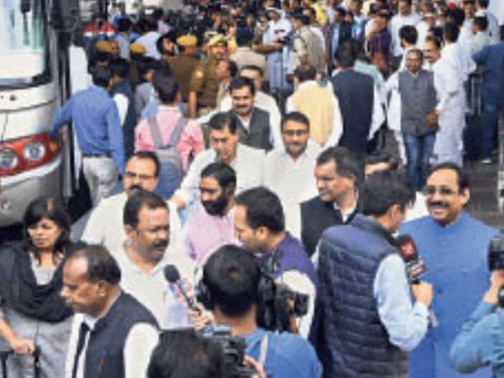 एयरपाेर्ट पर मध्य प्रदेश के कांग्रेसी विधायकाें ने बीजेपी के खिलाफ नारे लगाए। सज्जन वर्मा सहित कई कांग्रेसियाें ने कमलनाथ सरकार सुरक्षित रहने का दावा किया। विधायकाें के अलग मत थे। इनमें कुछ विधायक कांग्रेस के साथ 112 ताे काेई 94 तक आंकड़ा गिना रहे थे। कुछ विधायकाें ने खुद की बाड़ेबंदी पर कहा कि जिस तरह से बीजेपी वाले गुरुग्राम घूमने गए थे। ठीक उसी तरह से हम भी राजस्थान आए हैं।
